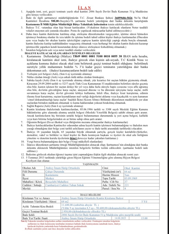 Atabey İHO Okul Kantini İhalesi