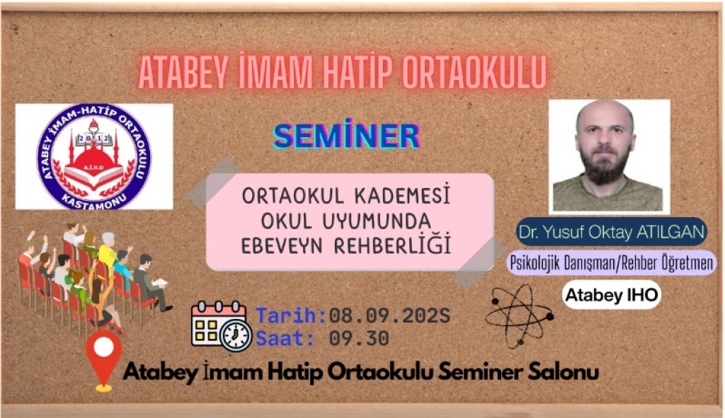 Kıymetli 5. sınıf velilerimiz, 5. sınıfa adım atacak çocuklarımız için “Ortaokula Uyum” seminerinde buluşuyoruz. Yeni döneme birlikte güçlü bir başlangıç yapmak üzere sizleri bekliyoruz.